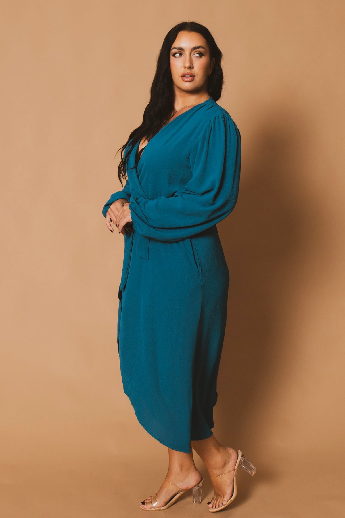 CULTURE CODE Dresses Plus Size Classic Wrap Belted Dress - Turquoise