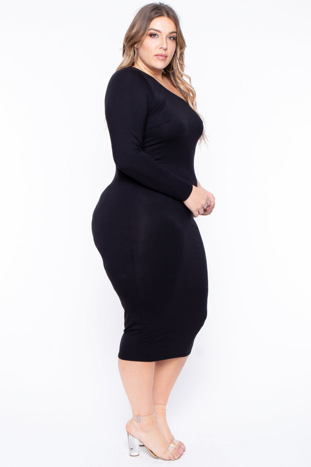 Curvy Sense Dresses Plus Size Ebony One Shoulder Dress - Black
